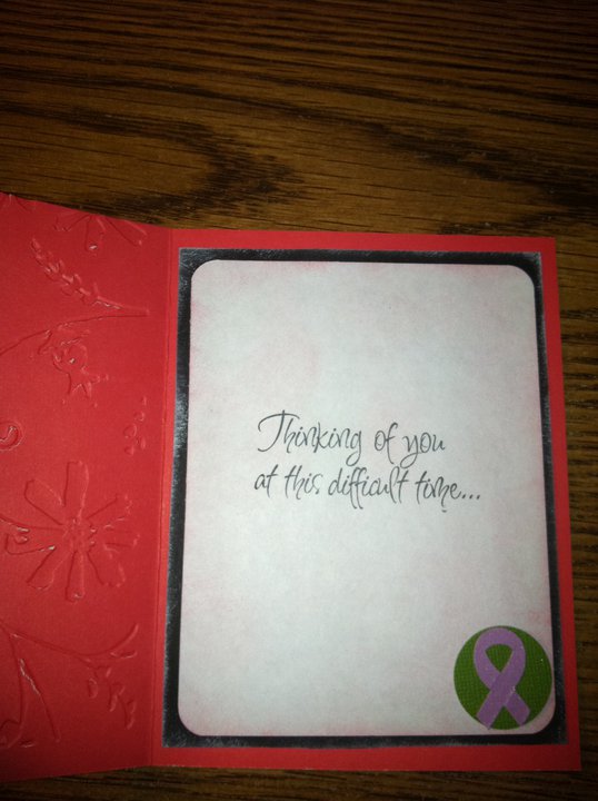I'd like to first start out by saying that I believe in Insprational "Sympathy Cards." I believe that in a time of greif, people need to be reminded that their religious figure what ever that may be is still with them. So I always include a uplifting symbol, and the color green. Green means growth.